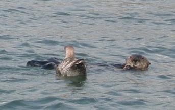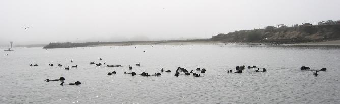 Here is part of a large raft of otters we saw near the mouth of the slough on 11/4/07. We counted 79 otters that day.
